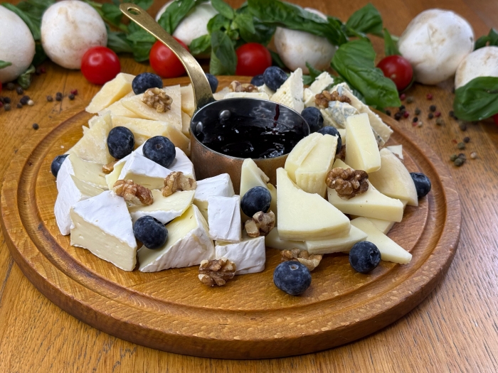 branza cu mucegai gran bavareze, branza grana duro, pecorino, camembert, miez de nuca, dulceata de afine