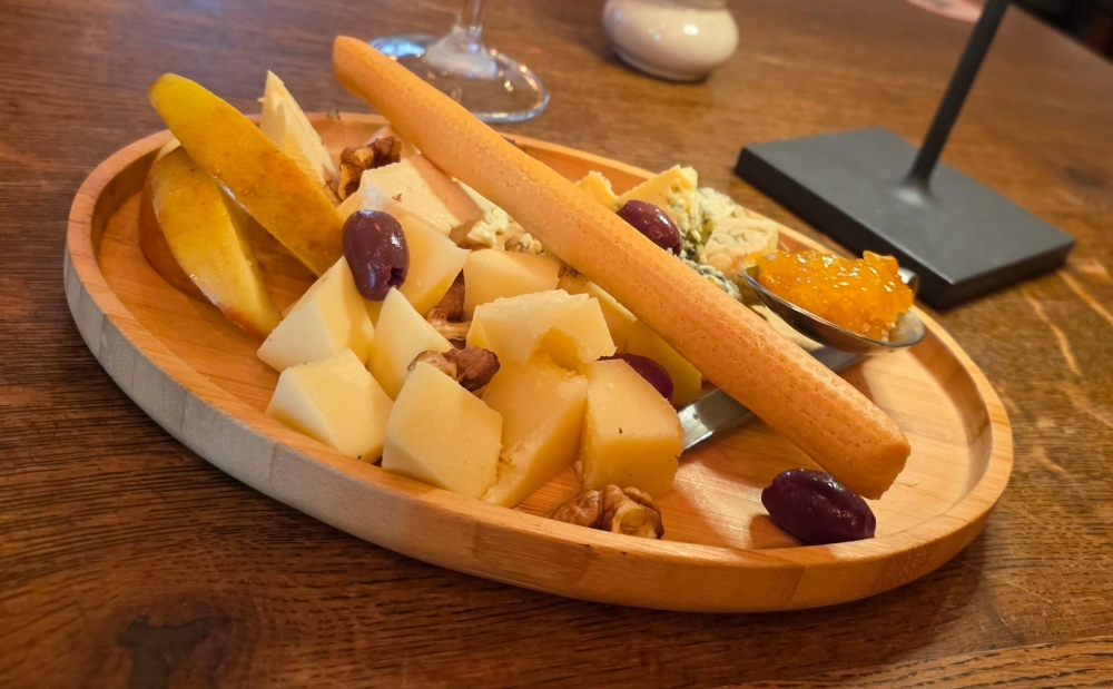 brânză cu mucegai gran bavareze, brânză grana duro, pecorino, camembert, miez nuca, dulceață de portocale, măr, măsline kalamata, grisine